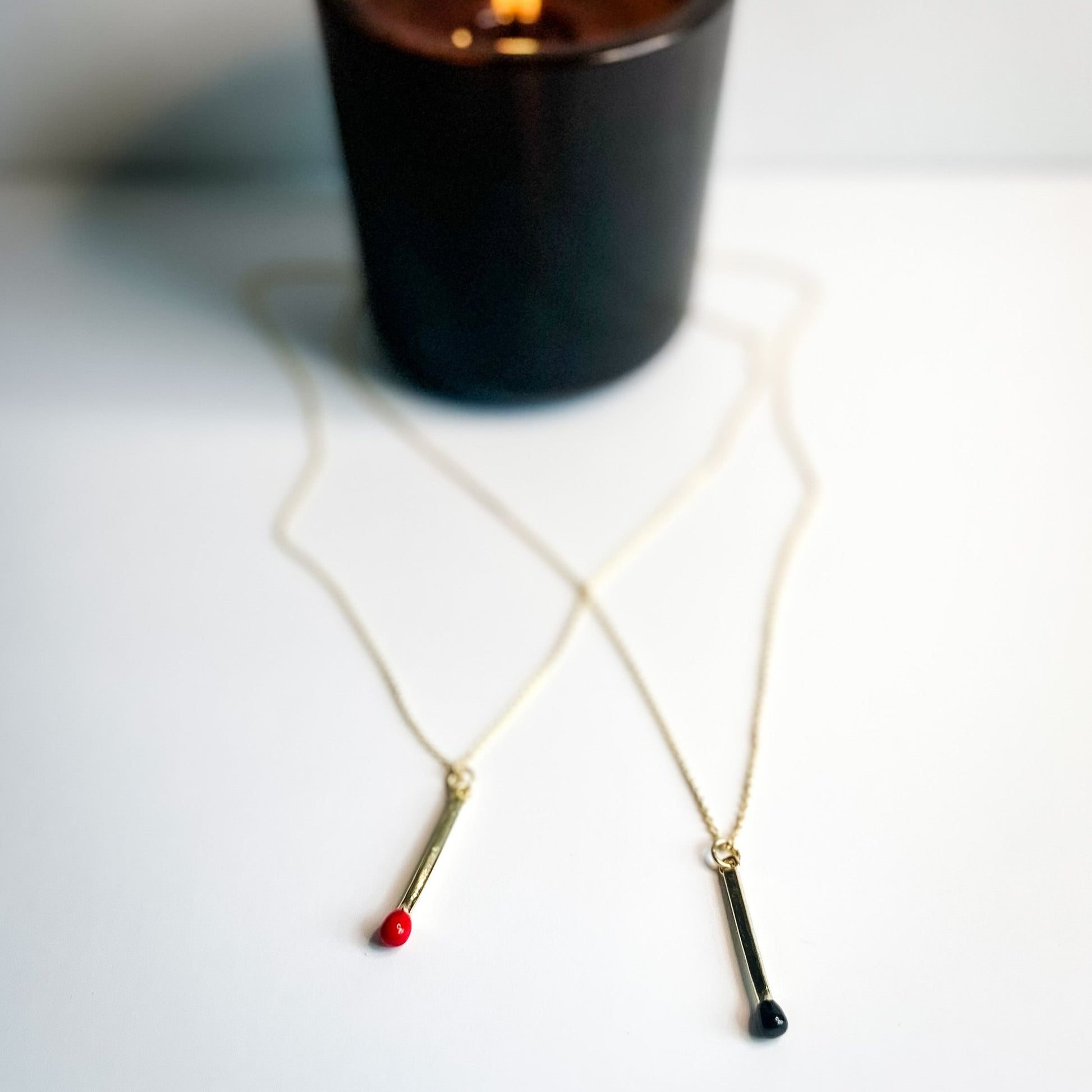 This edgy matchstick necklace features a16k gold plated matchstick pendant with a burnt tip that is nickel free. Crafted with an elegant design, this necklace is perfect for making a statement. It hangs on an 18 inch gold plated chain with a 2 inch extender chain to alter it to the perfect length. Grab the matching earrings for a complete look!