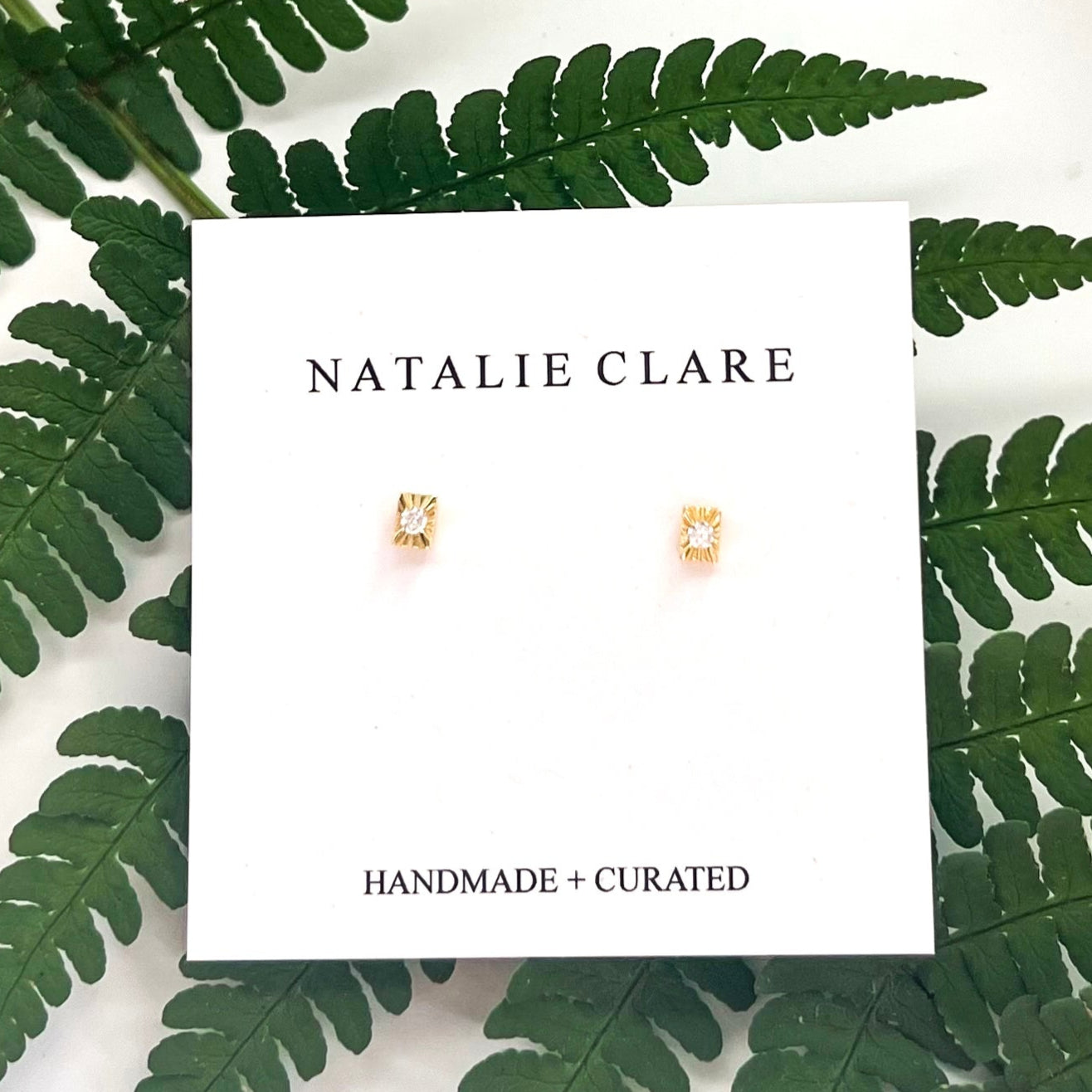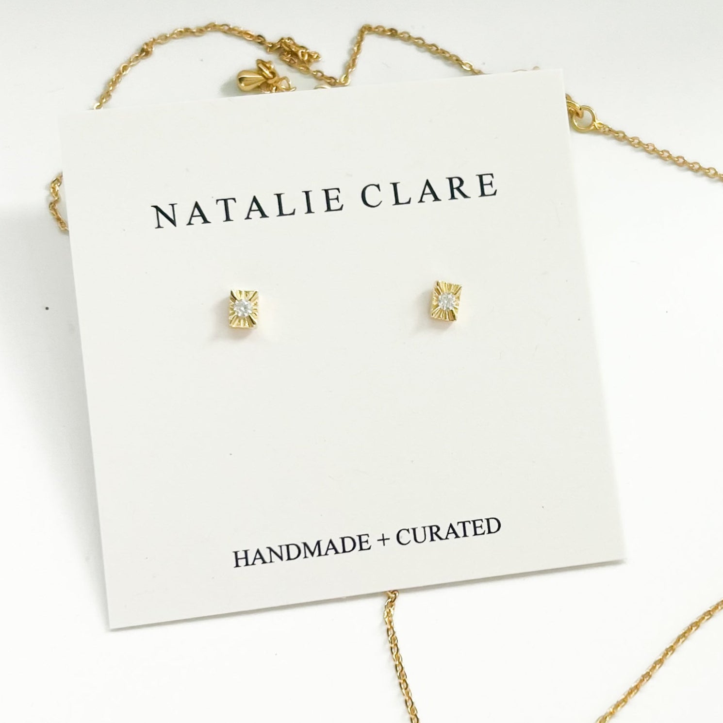 These gold-plated 925 sterling silver rectangle stud earrings feature sparkling clear cubic zirconia crystals measuring 5x3 mm. The combination of sterling silver and gold plating ensures lasting shine and resistance to tarnishing.
