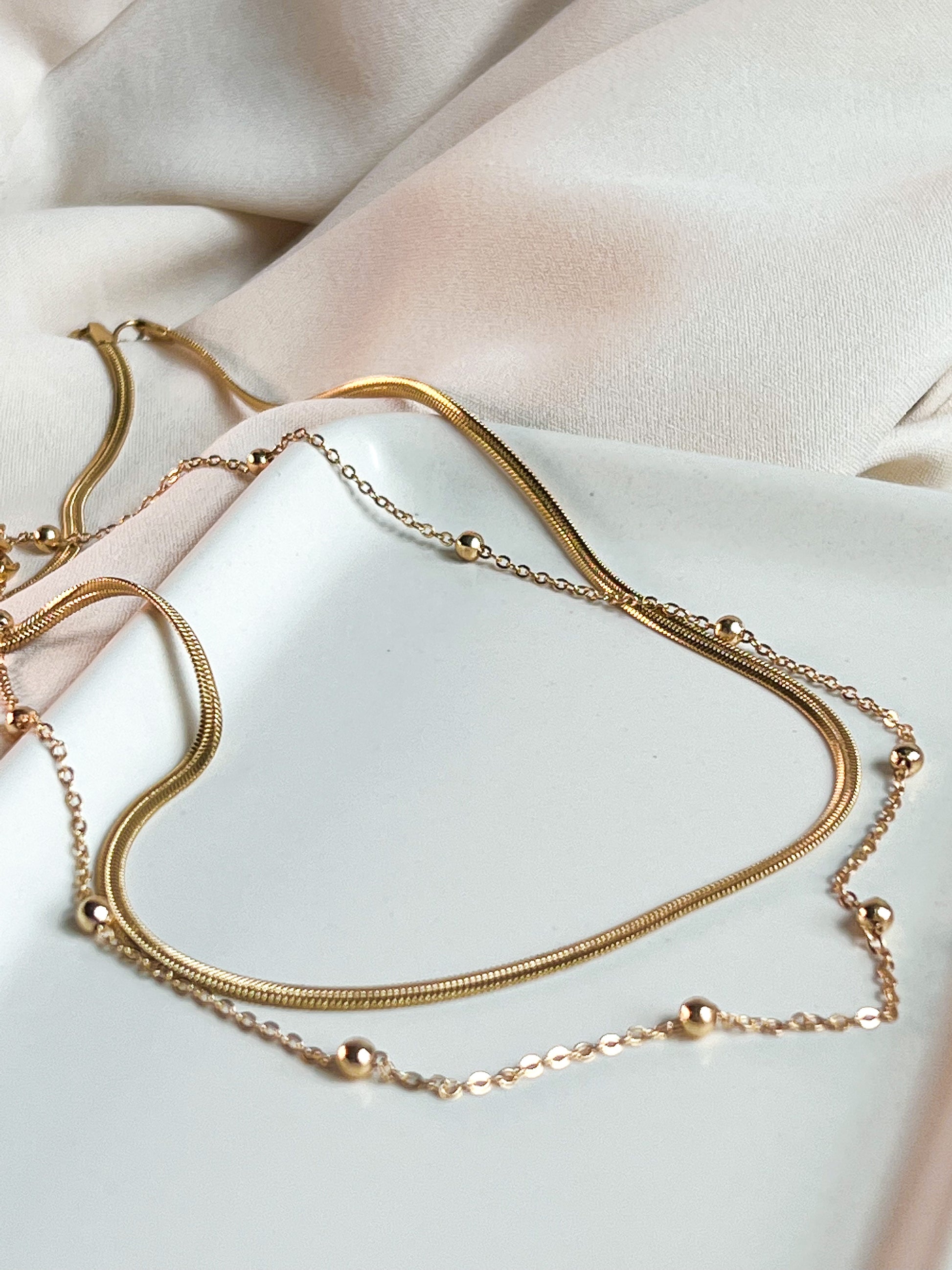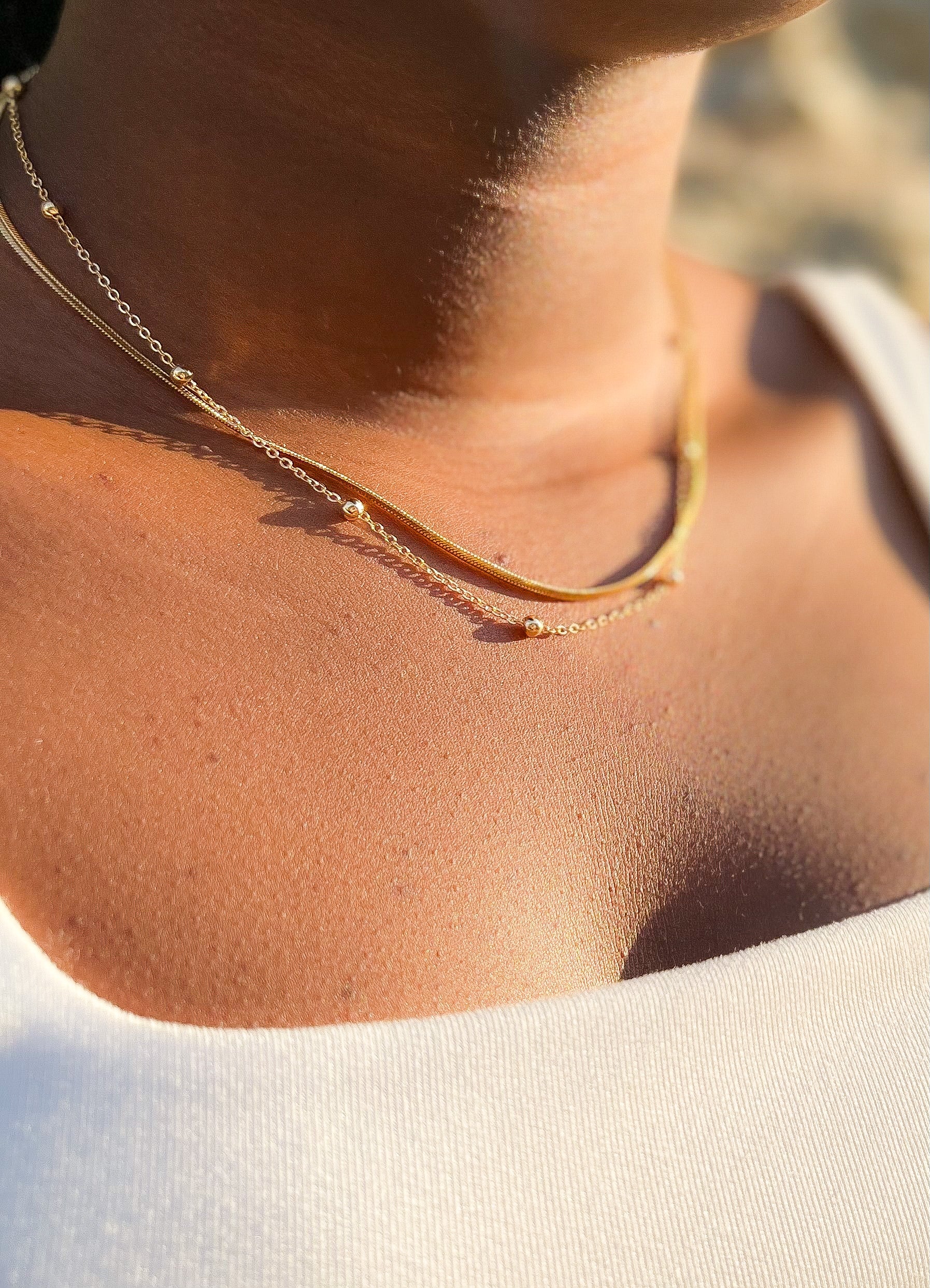 This 14k gold plated necklace is 18 inches and made of stainless steel.Â
