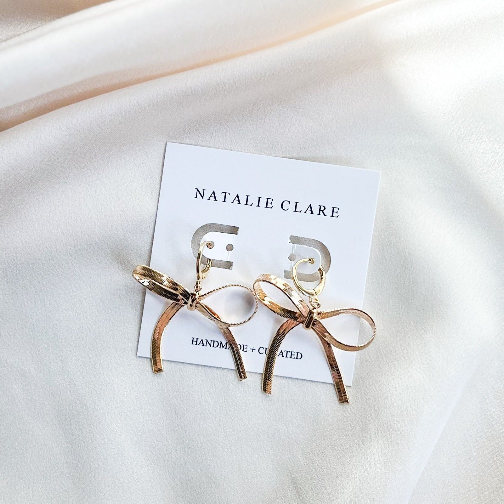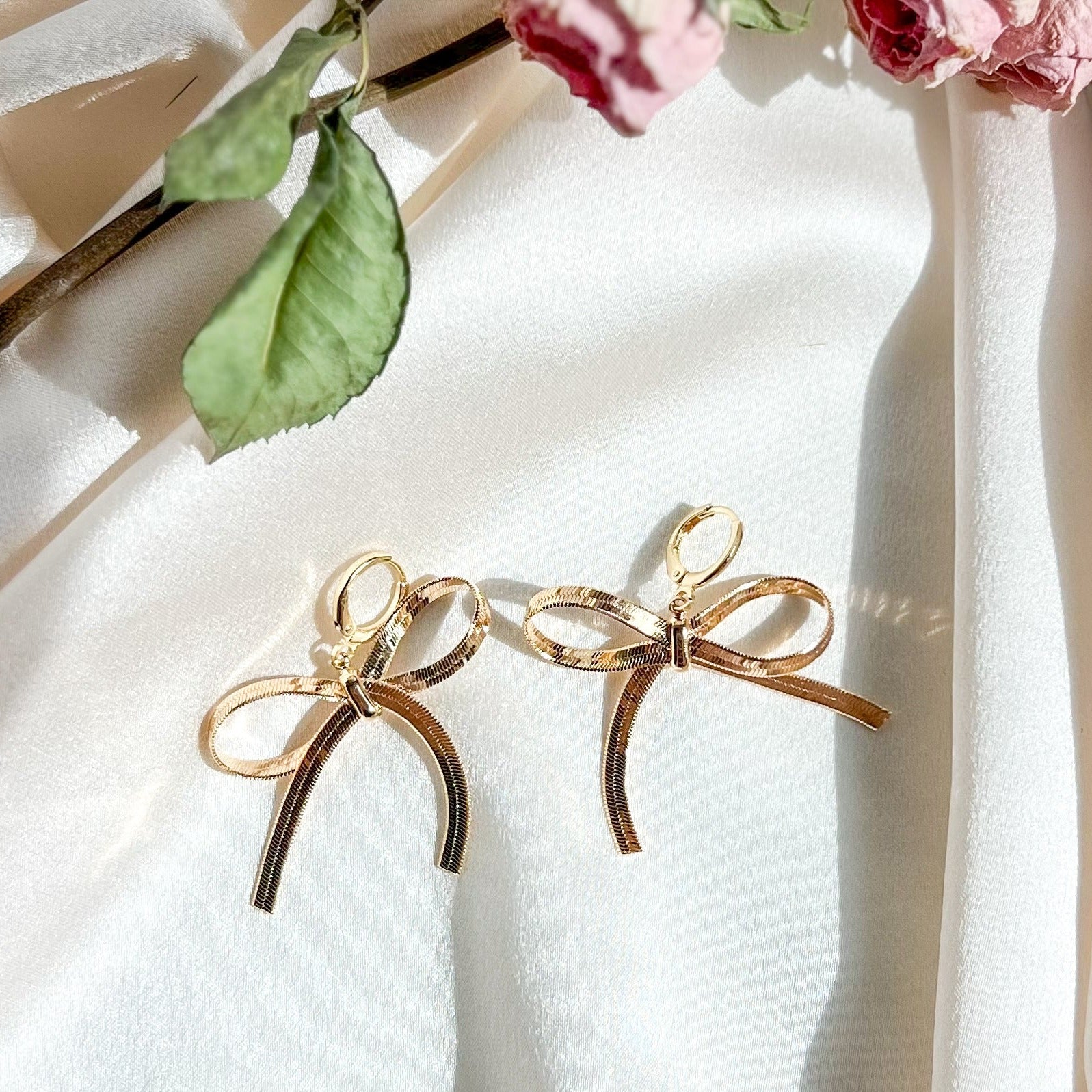 The Herringbow Hoops are crafted with an 18k gold plated brass bow of herringbone chain hanging on 18k gold plated brass huggie hoops that are nickel free. The perfect combination of elegant design and comfort for any occasion. These hoops are also hypoallergenic and lightweight for easy wear.Â