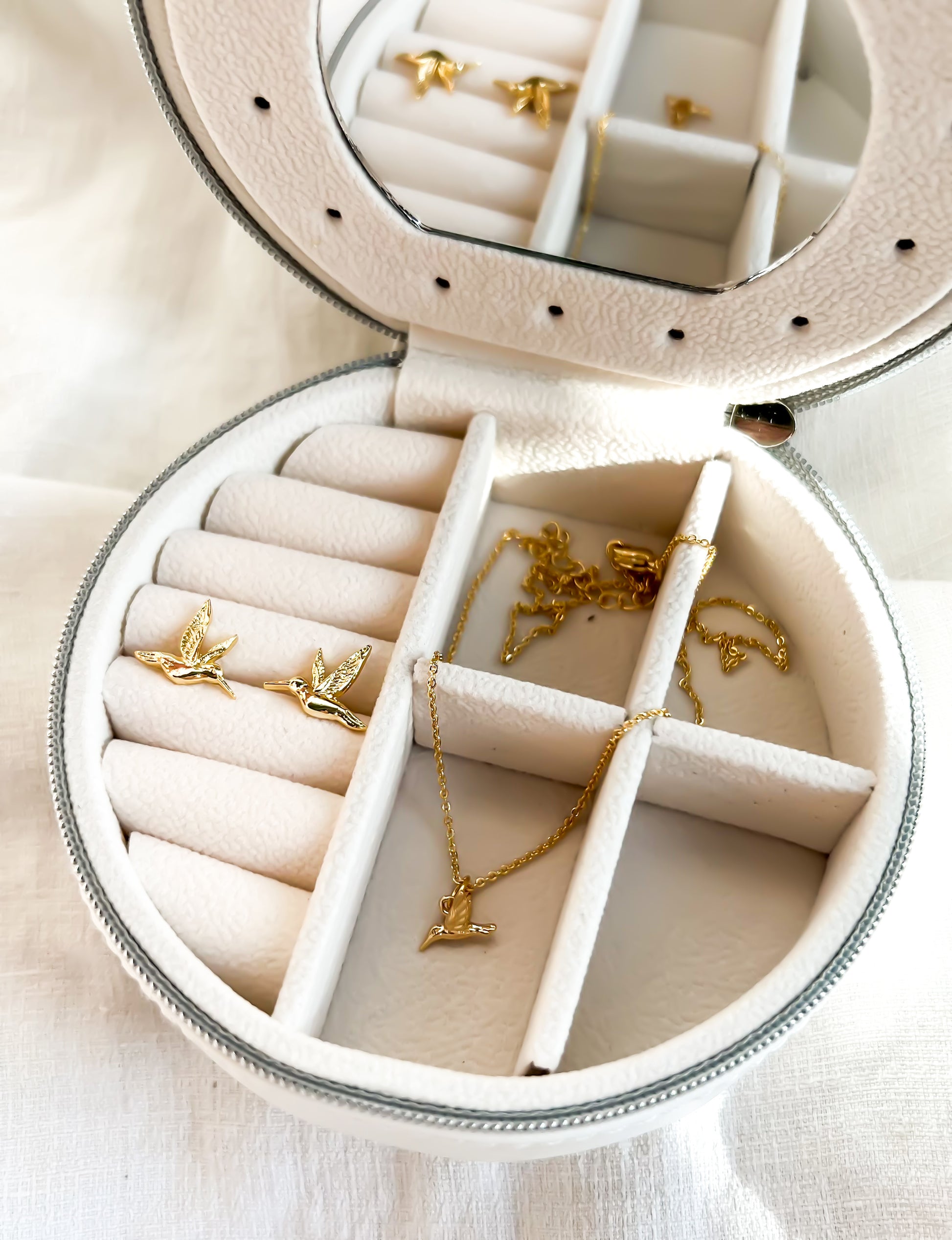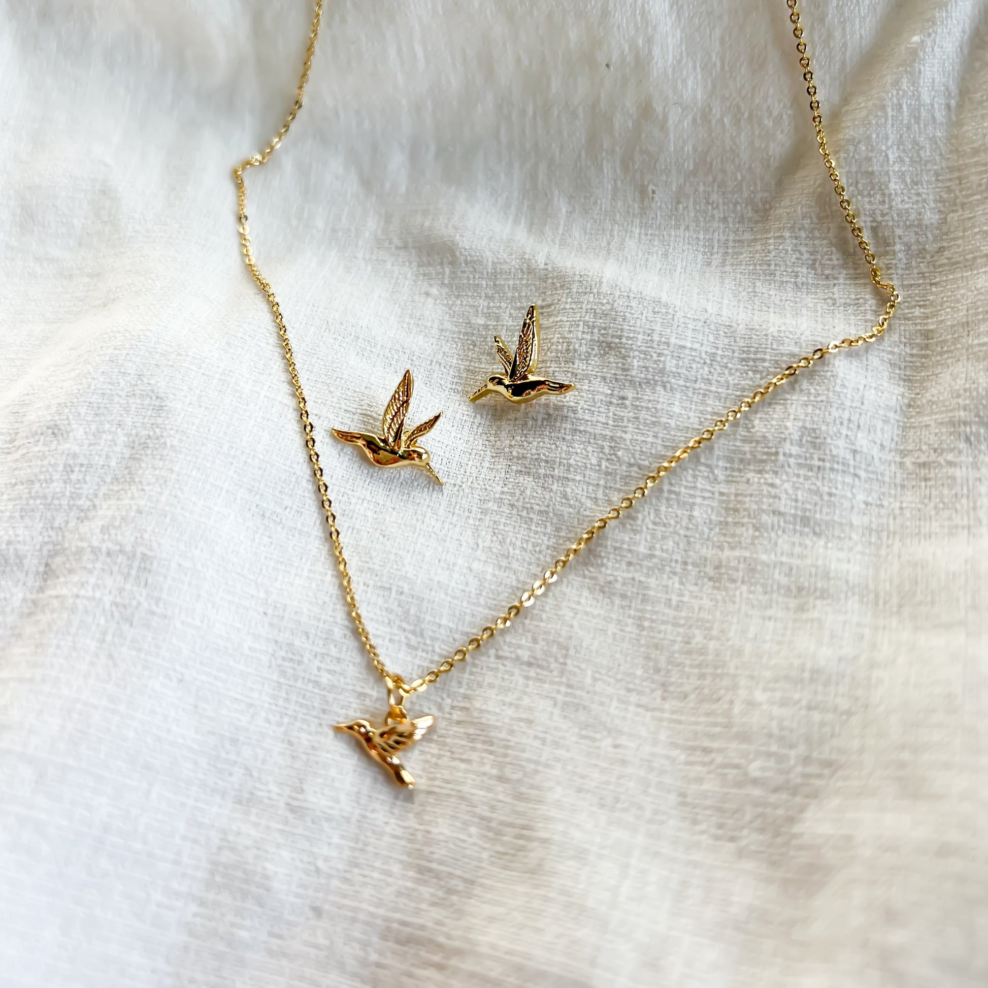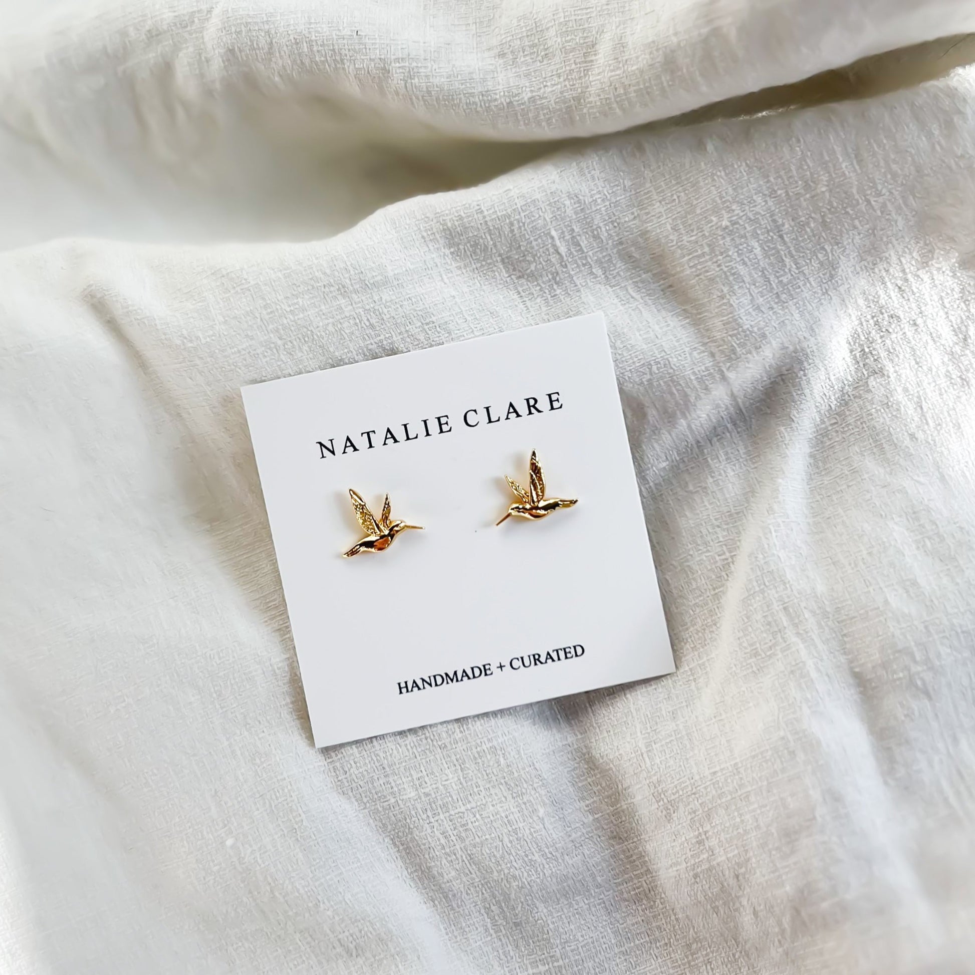 Introducing the new Hummingbird Stud Earrings, made with gold plated brass. These studs are perfect for showing your love of birds while keeping your accessories minimal and delicate.Â