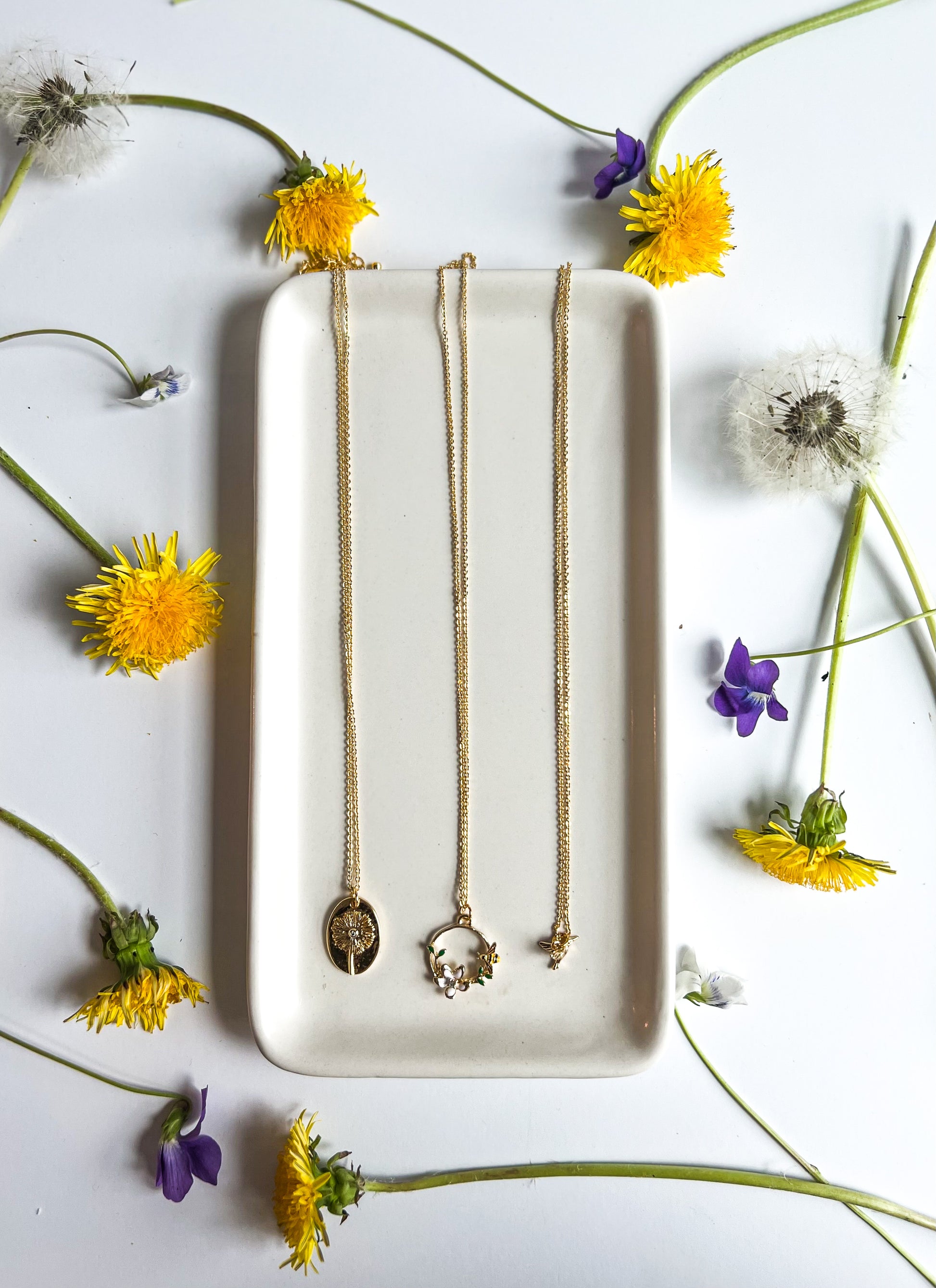 This necklace has an 18K gold plated brass hummingbird charm on stainless steel gold plated 18 inch necklace.
