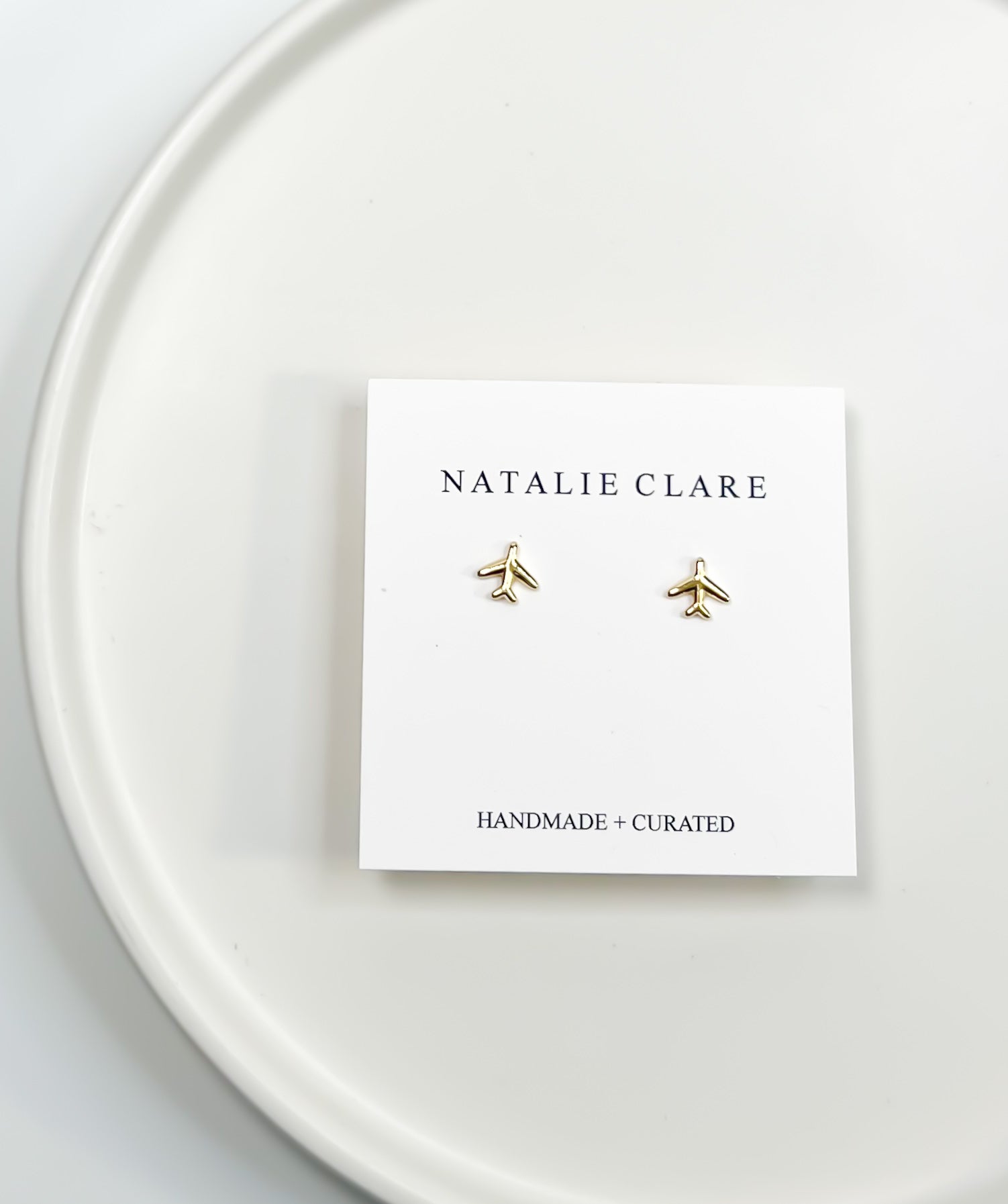 Perfect for anyone who loves to travel, these golden stainless steel stud earrings are adorable and dainty and a great addition to your collection. You can even wear them through security.Â