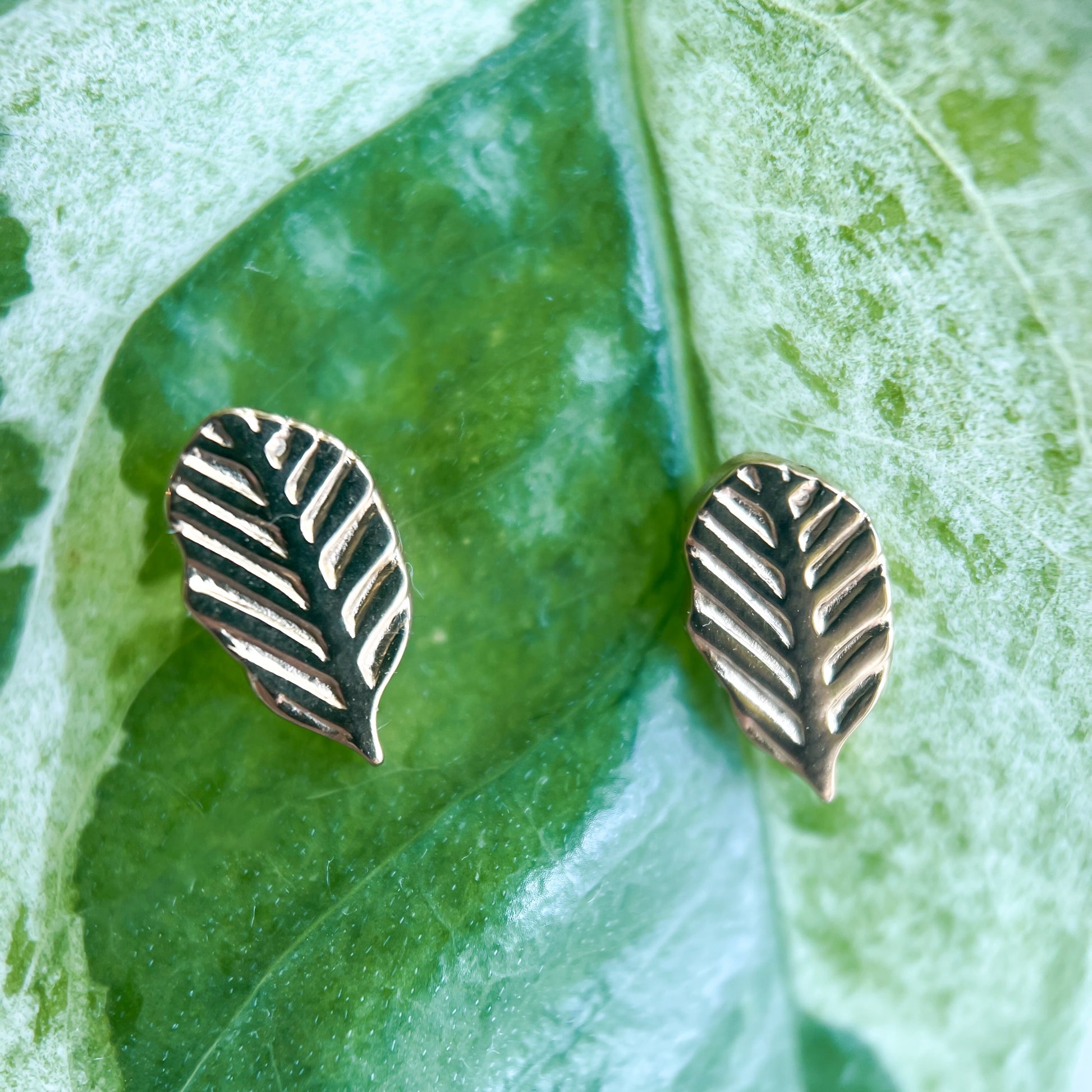 The Little Leaf Stud is made of golden stainless steel measuring 10x5.5mm. Its textured leaf lines evoke a sense of nature and add a unique touch.Â