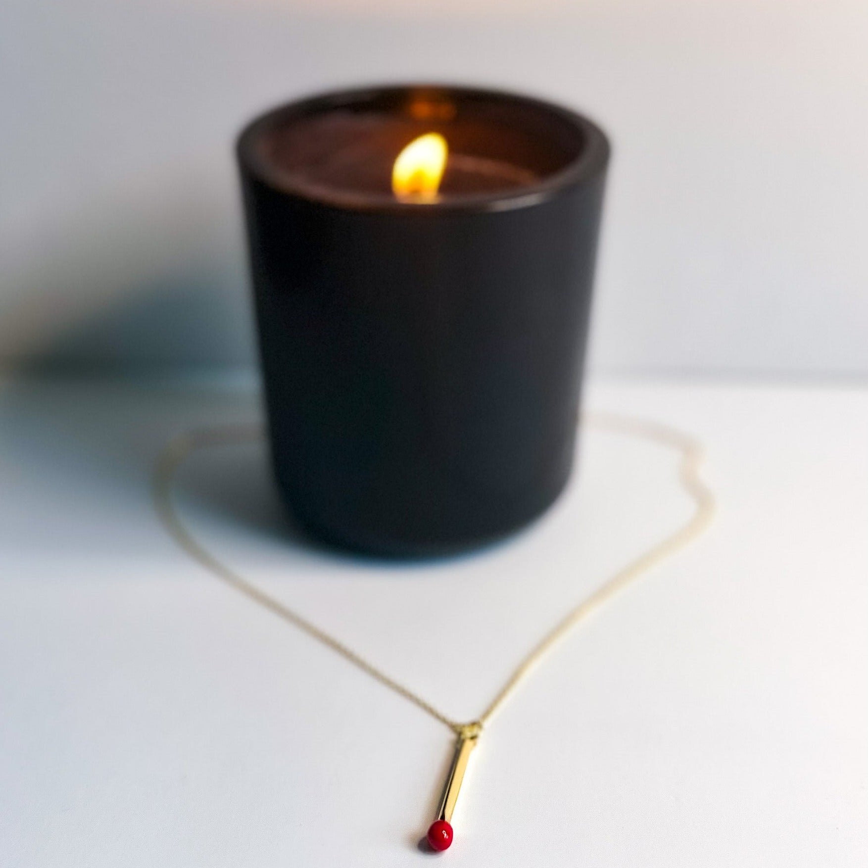 This edgy matchstick necklace features a16k gold plated matchstick pendant with a red tip that is nickel free. Crafted with an elegant design, this necklace is perfect for making a statement. It hangs on an 18 inch gold plated chain with a 2 inch extender chain to alter it to the perfect length. Grab the matching earrings for a complete look!