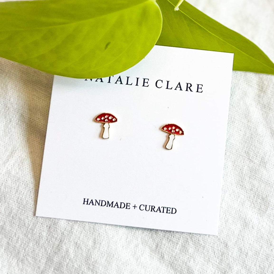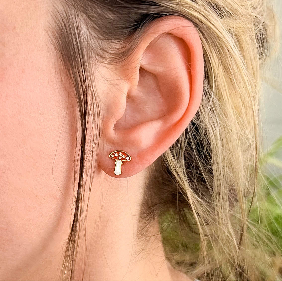 Add a pop of color to any outfit with our Mushroom Stud Earrings! Made with sterling silver and electroplated enamel, these red and white mushrooms are perfect for every day wear. Be a fun-gi and grab a pair today!