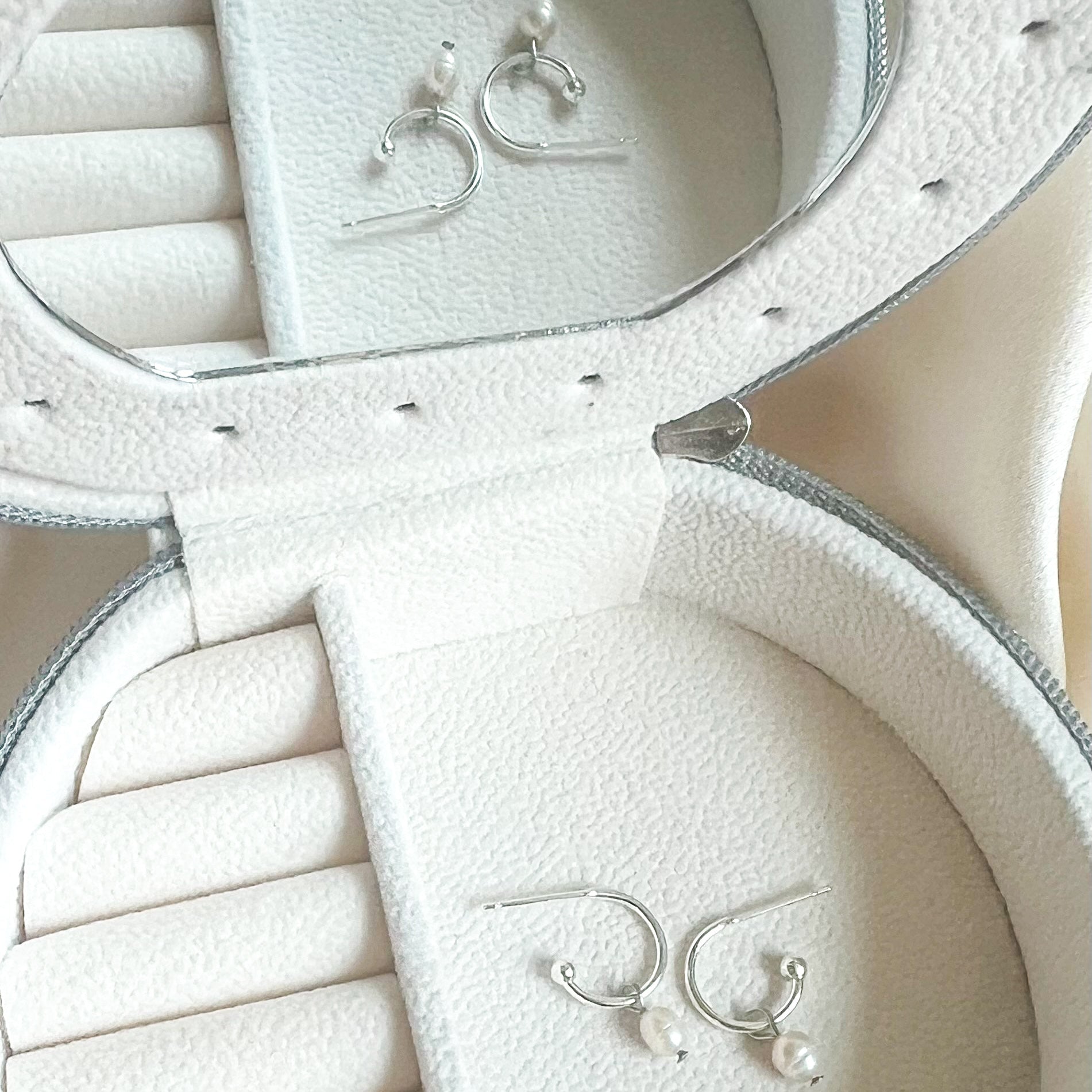The Silver Chloe Earrings bring dainty elegance to your style with their high quality sterling silver-plated brass hoops. Each earring features a removable small natural freshwater pearl, letting you switch up your look from classic charm to modern chic in a snap.Â