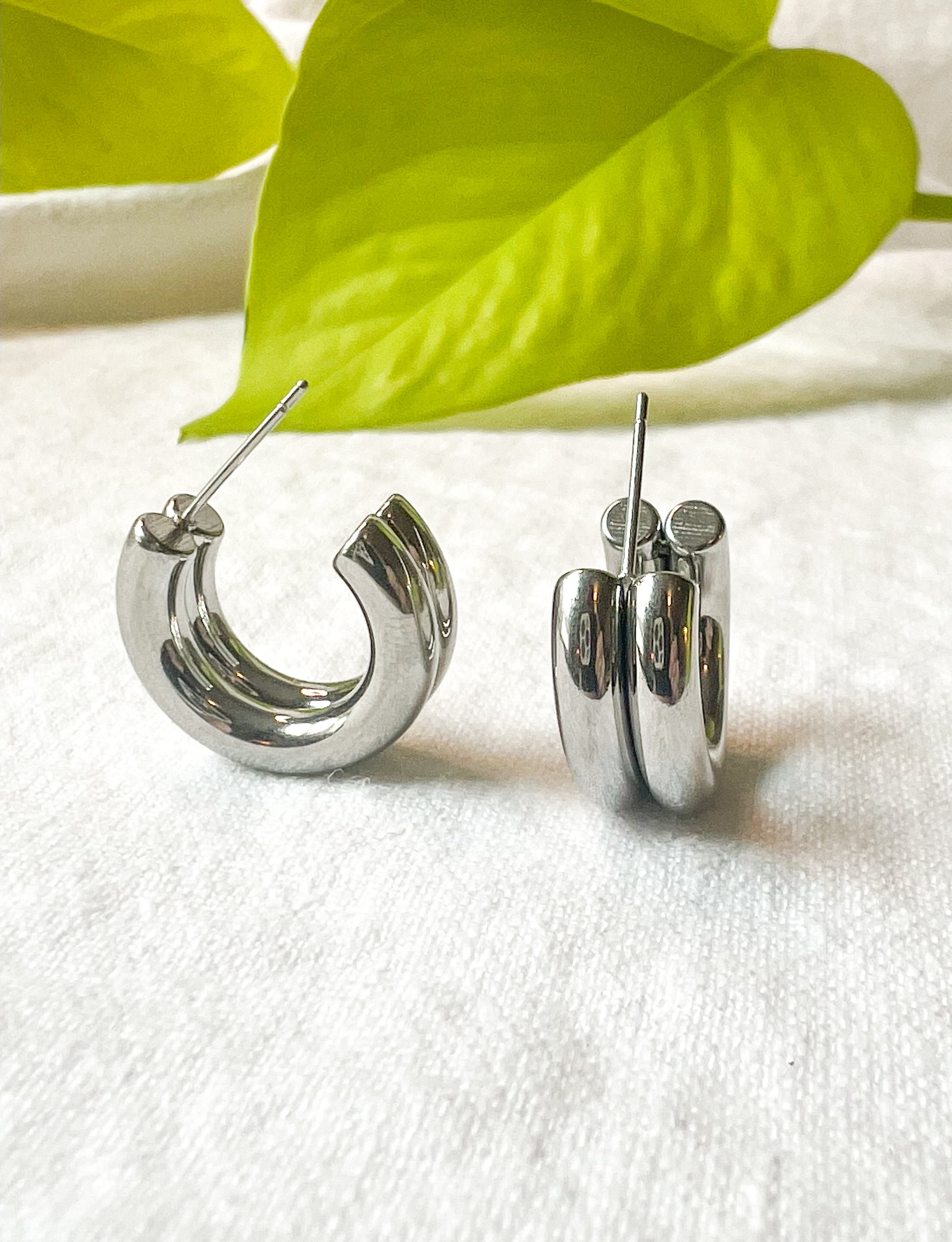 Shine bright with our Silver Double Hoop Earrings! Made with durable stainless steel, these elegant earrings will elevate any outfit. They feature a unique C hoop design and a stunning silver finish.Â