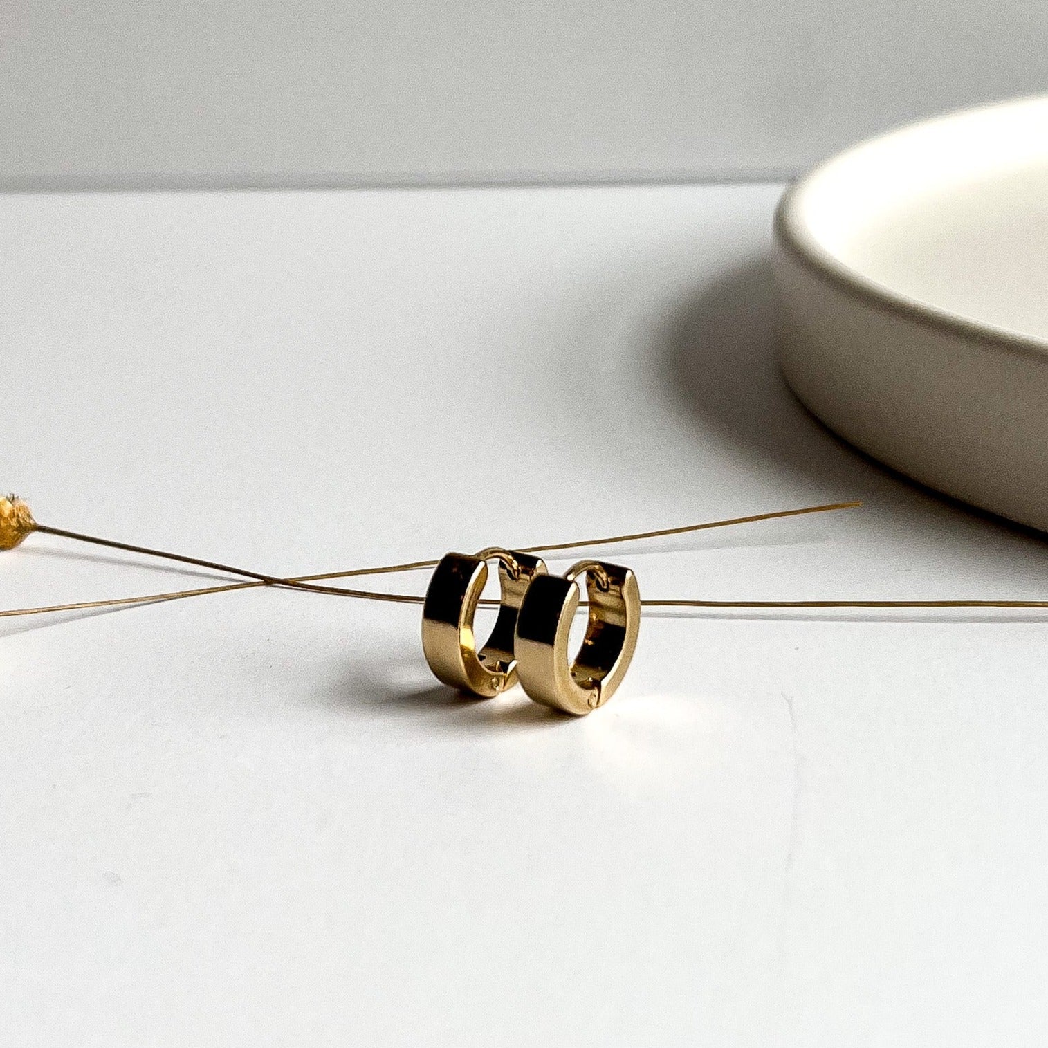 Golden stainless steel hypoallergenic huggie hoopsÂ