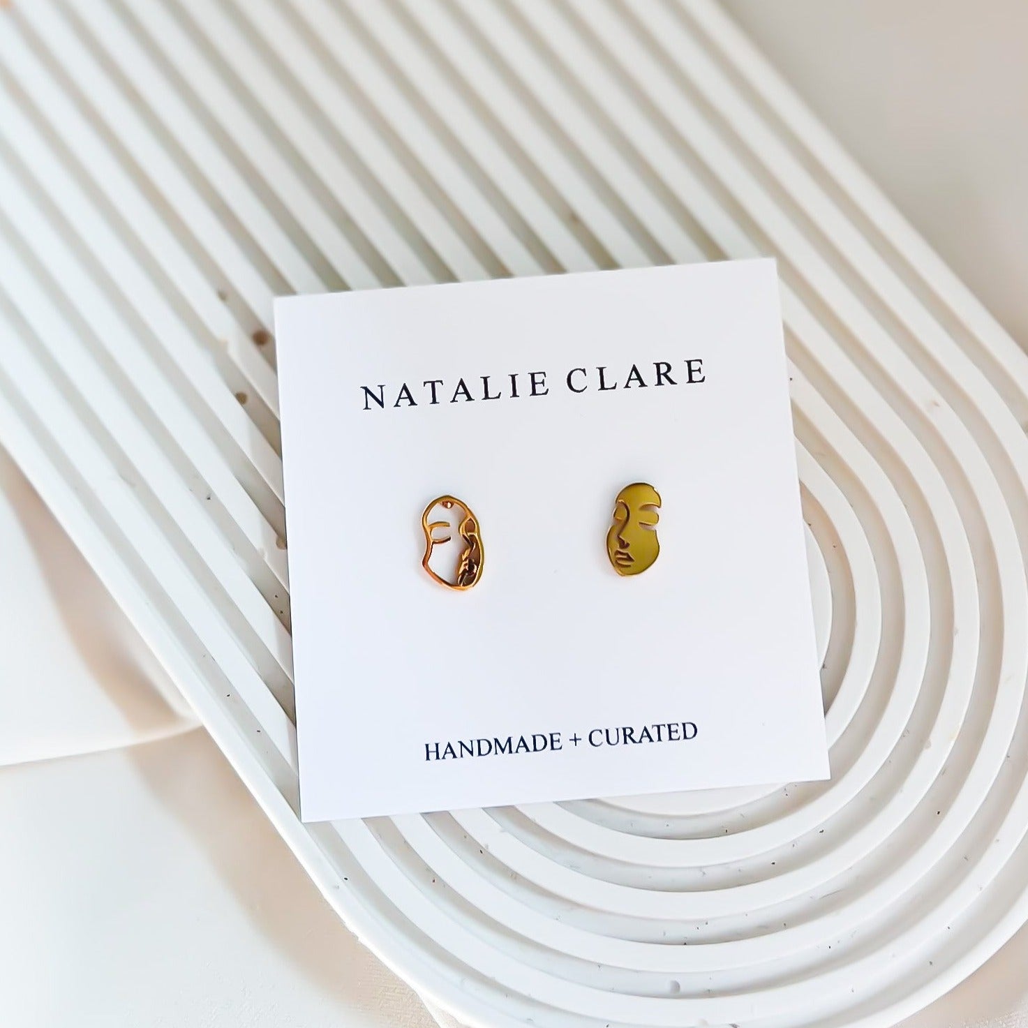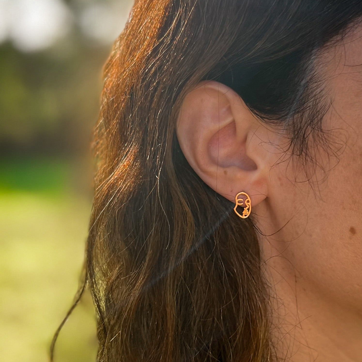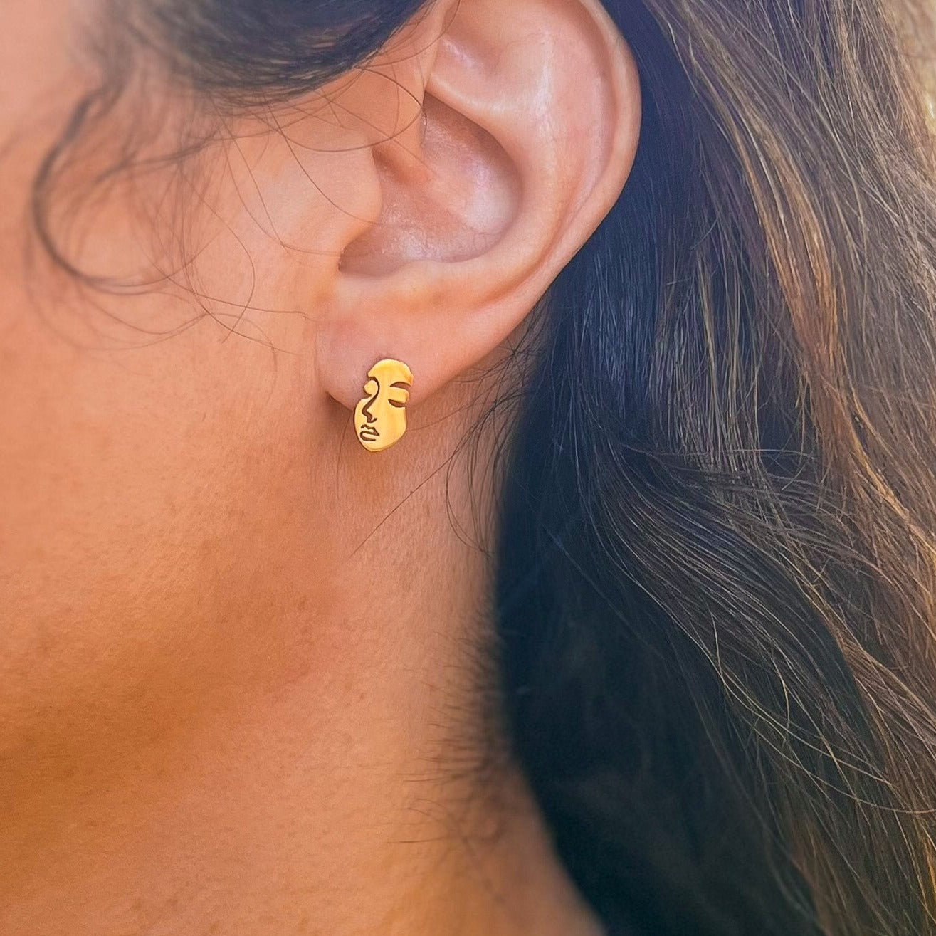 The Faces stud earrings are crafted from stainless steel and gold, making them perfect accessories for any style. Their abstract hollow stud design will make the perfect addition to your look.Â