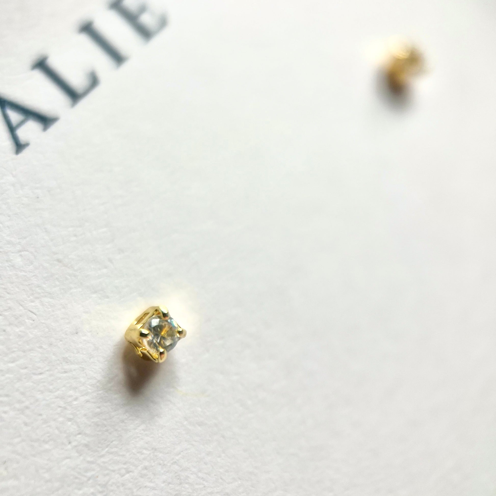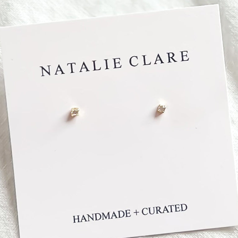 Meet our Tiny Cubic Zirconia Stud Earrings. Made with a brass metal base and 18k gold plating, these barely-there earrings feature tiny clear cubic zirconia for a subtle yet elegant touch. Perfect for second hole piercings.