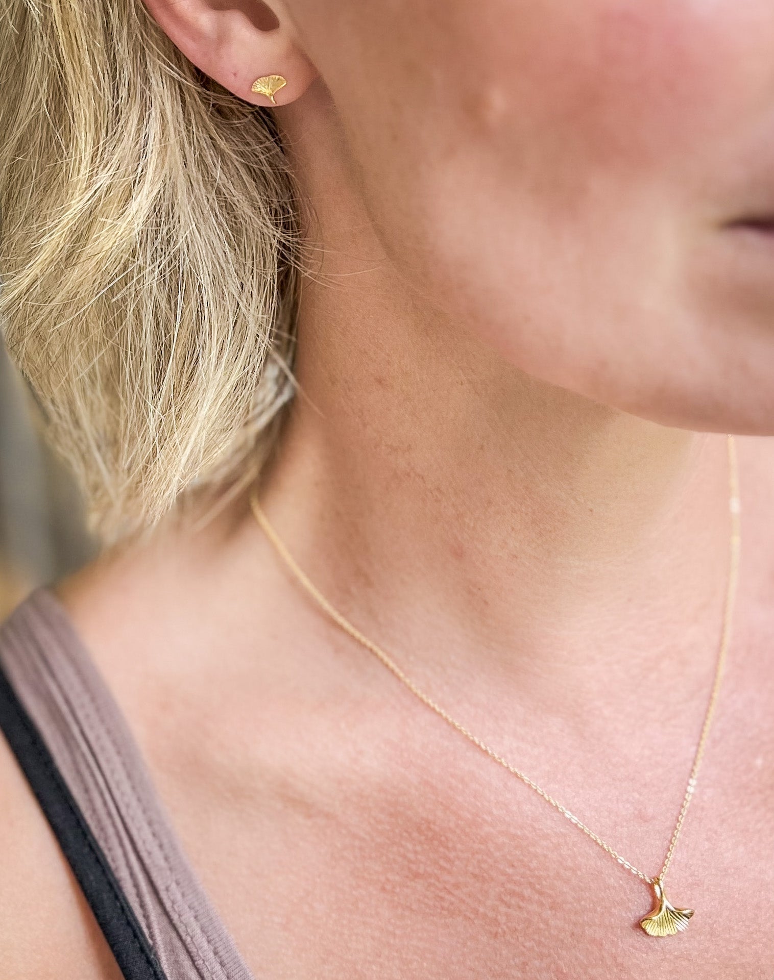 Keep nature close to your heart with this simple ginkgo leaf pendant necklace. Made of stainless steel and golden plated, this 18 inch necklace is perfect for everyone with its 2 inch extender chain that allows you to choose the length.Â