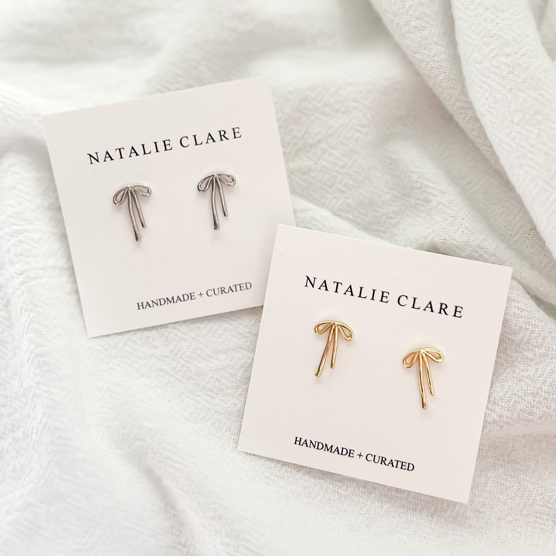 Made with 18k gold plated brass and platinum silver, these studs feature unique wrapping ribbons for a playful twist on classic earring designs. You'll definitely stand out from the crowd and add a touch of whimsy to any outfit.Â