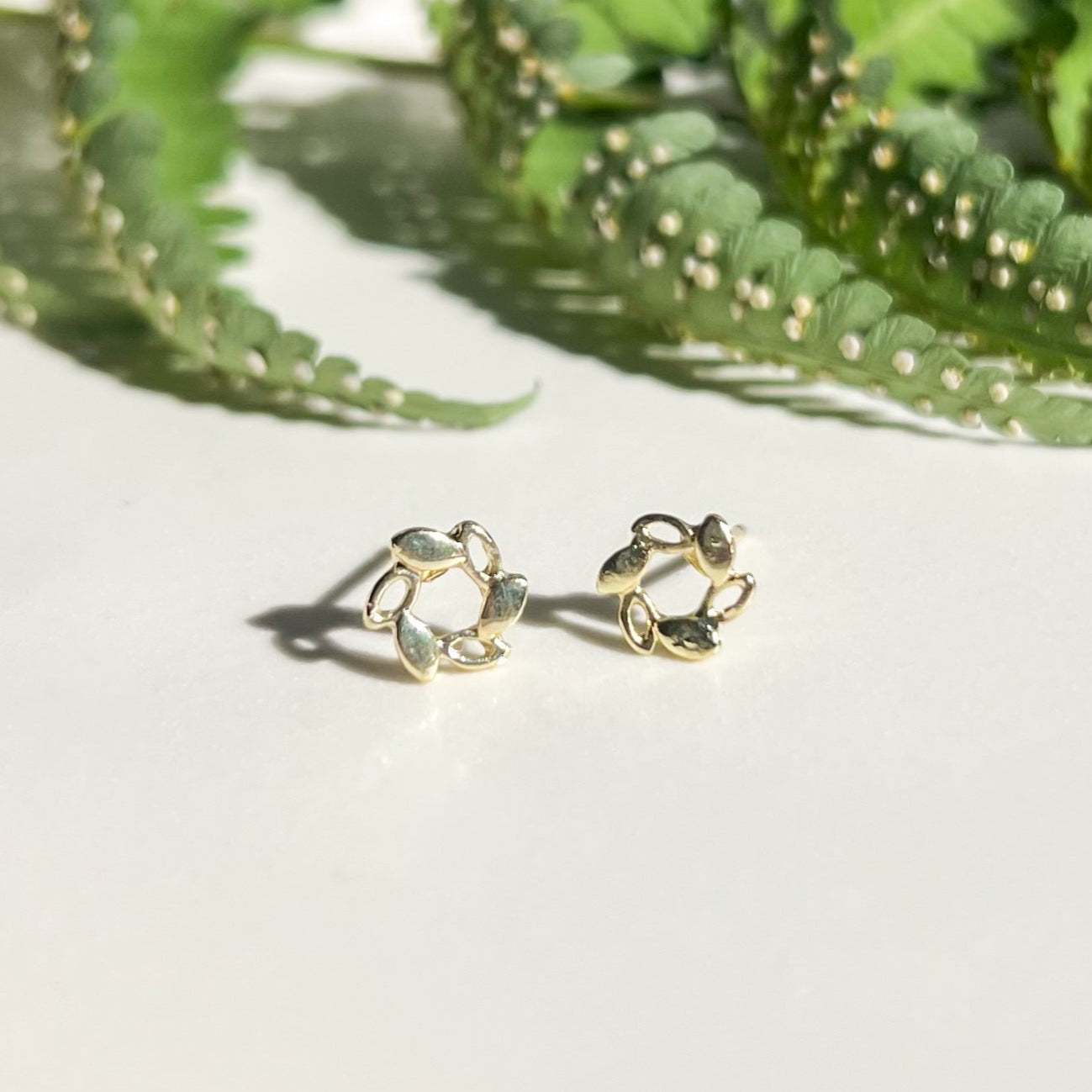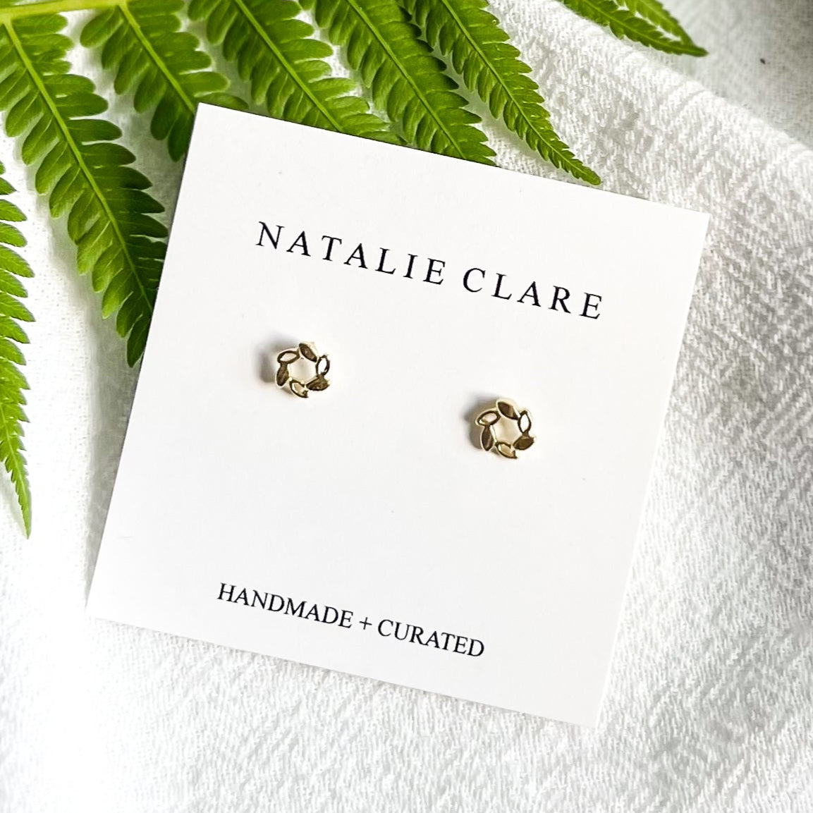 These Mini Wreath Studs feature a delicate leaf wreath design crafted in durable stainless steel. Each stud includes a 925 sterling silver pin for added quality and comfort that's perfect for sensitive ears.Â